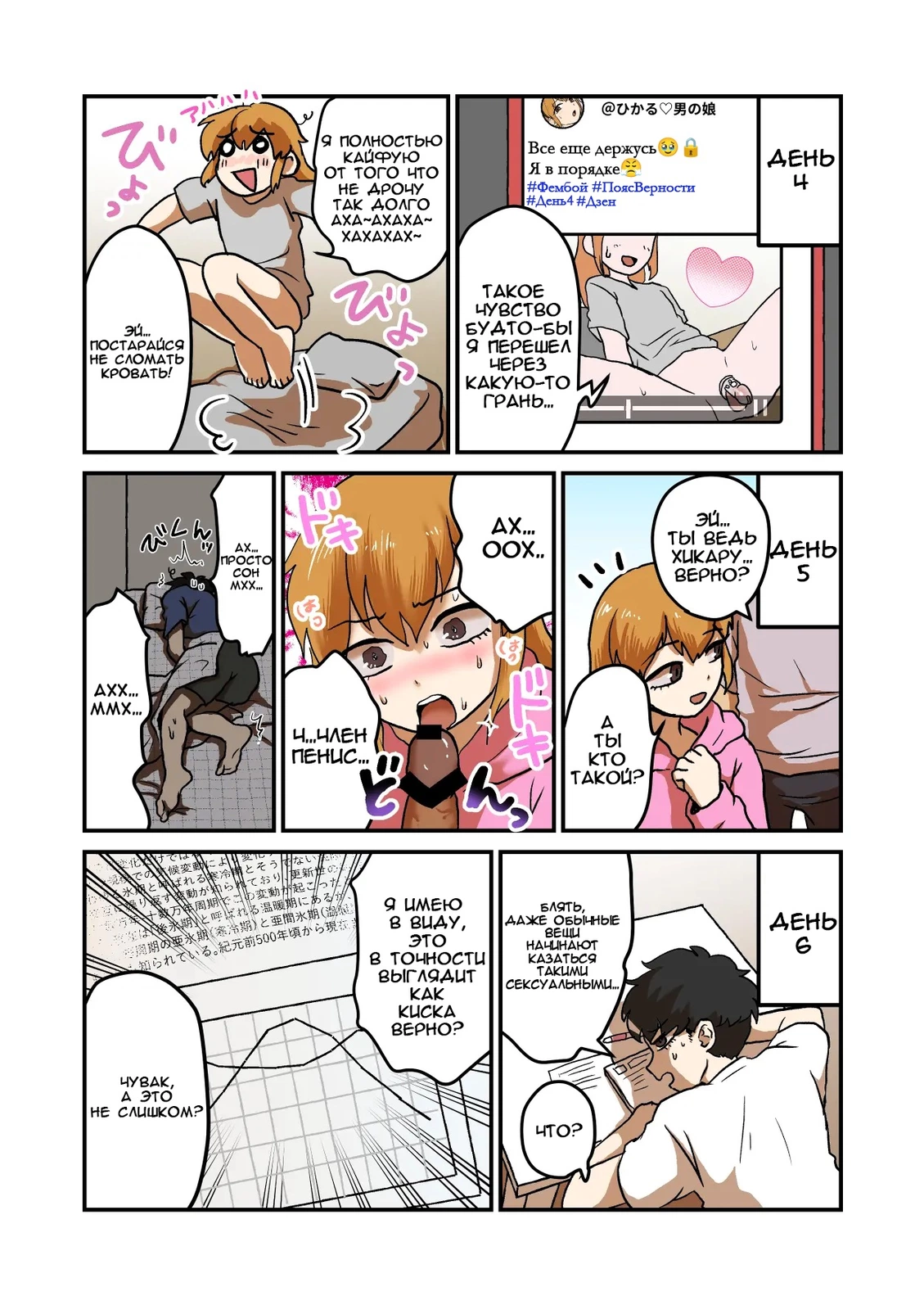 Продолжение истории фембоя Хикару зависимого от мастурбации. Чтобы это остановить, сосед по комнате запирает его в поясе верности на семь дней